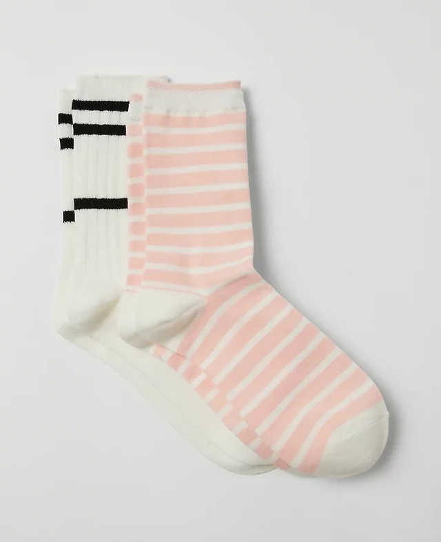 Ann Taylor Weekend Collection Striped Crew Sock Set Winter White Women's