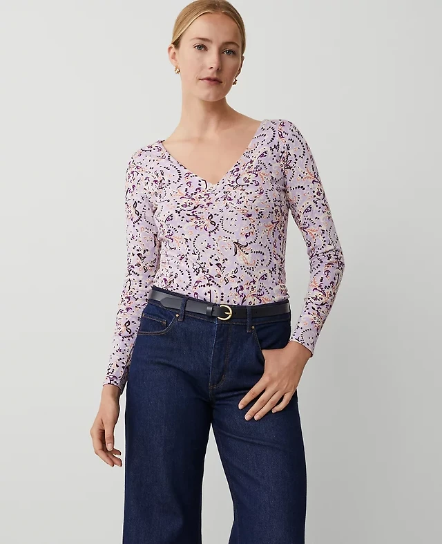 Ann Taylor Wide V-Neck Top Size XS Lilac Women's