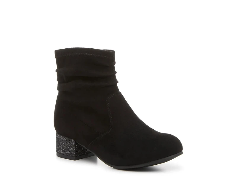 Add fun style to her cool weather looks with the Anna bootie from Kelly & Katie. This ankle boot features a slouchy design with a glitter-covered block heel and charming round toe.