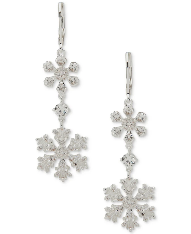 Anne Klein Cubic Zirconia Silver-Tone Double Snowflake Drop Earrings