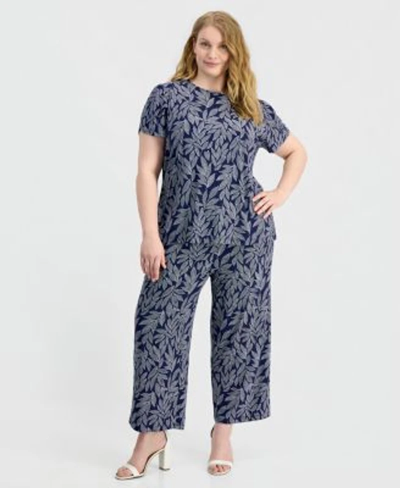Simply styled and smartly printed, these plus size cropped pull-on pants deliver a fresh wide-leg silhouette from Anne Klein Essentials.