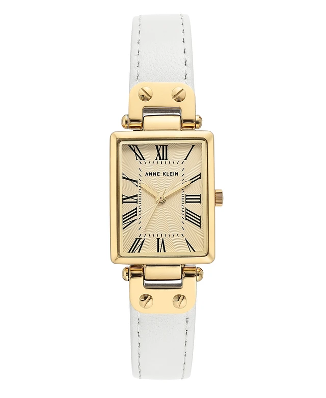 Anne Klein Gold-Tone and White Leather Strap Watch 21.5mm