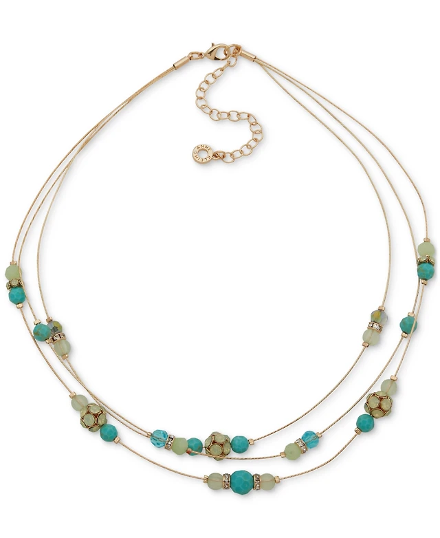Anne Klein Gold-Tone Mixed Stone & Bead Station Layered Necklace, 16" + 3" extender