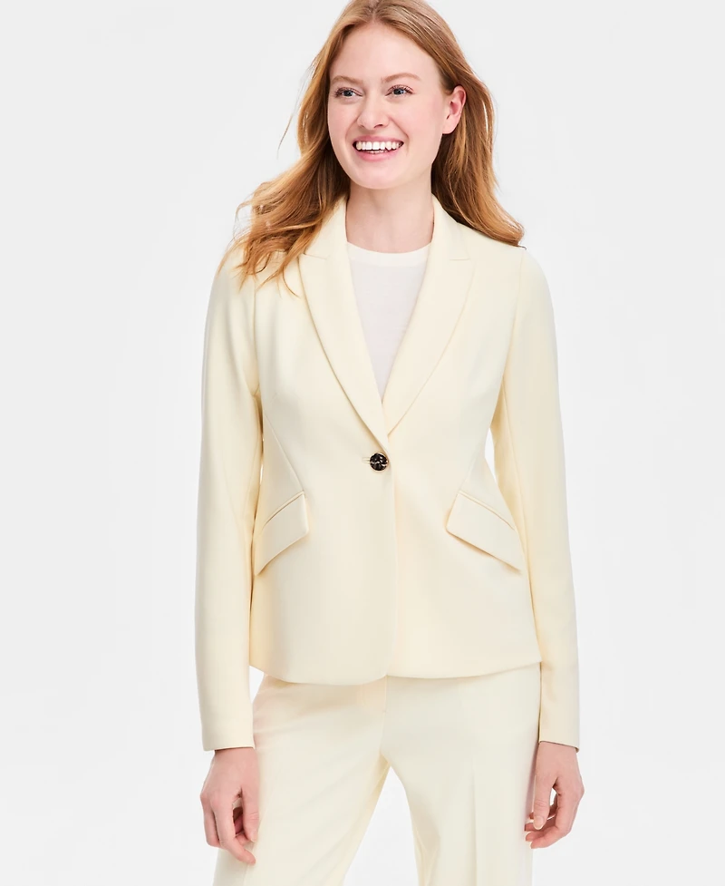 Effortless elegance defines this Anne Klein long-sleeve jacket, shaped with a peak lapel and shoulder pads for a structured silhouette. One-button closure completes its streamlined look for versatile wear.