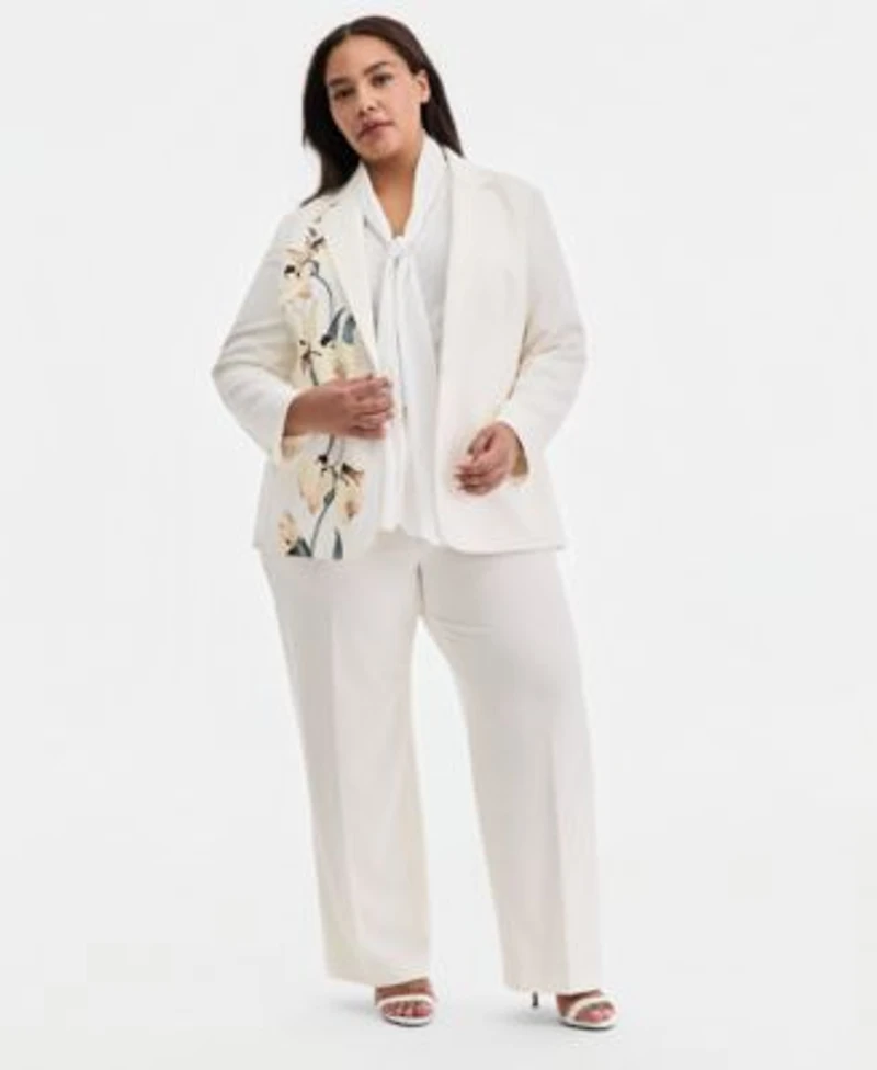 Anne Klein Plus Size Floral Print One Button Blazer Pull On Flap Pocket Pants