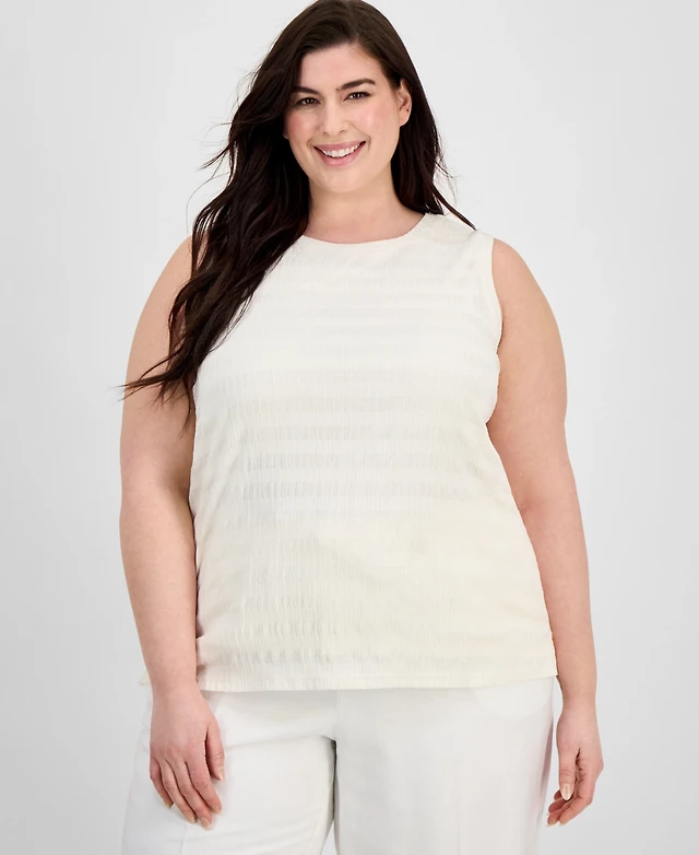 Anne Klein Plus Size Pucker-Wave Knit Sleeveless Top
