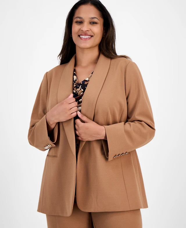 Anne Klein Plus Size Shawl-Collar Open-Front Blazer