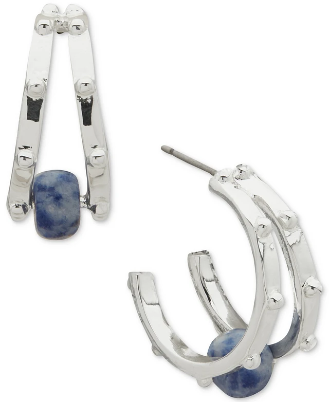 Anne Klein Silver-Tone Blue Beaded Two Row Hoop Earrings
