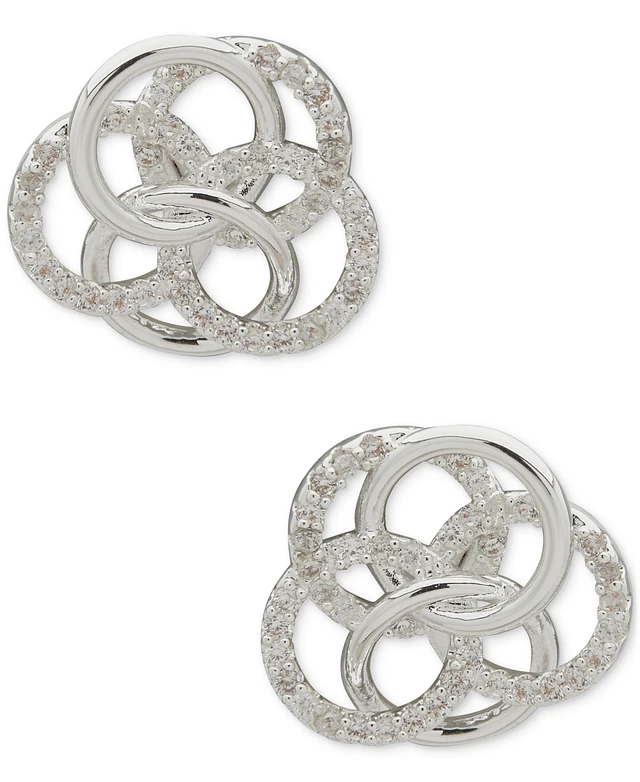 Anne Klein Silver-Tone Pave Interlocking Ring Stud Earrings