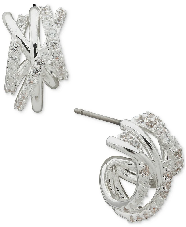 Anne Klein Silver-Tone Small Pave Criss Cross Huggie Hoop Earrings, 0.63"