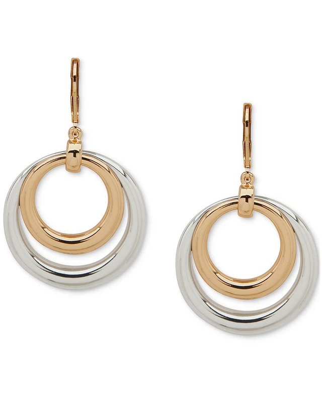 Anne Klein Two-Tone Double Ring Drop Earrings