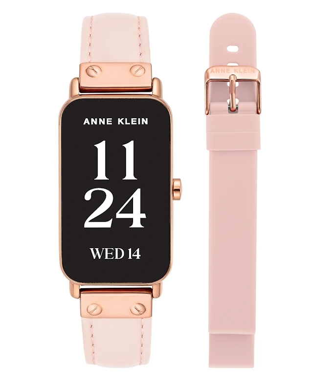 Anne Klein Women's Connect It Illume Smartwatch with Pink Leather and Pink Silicone Band, 37mm