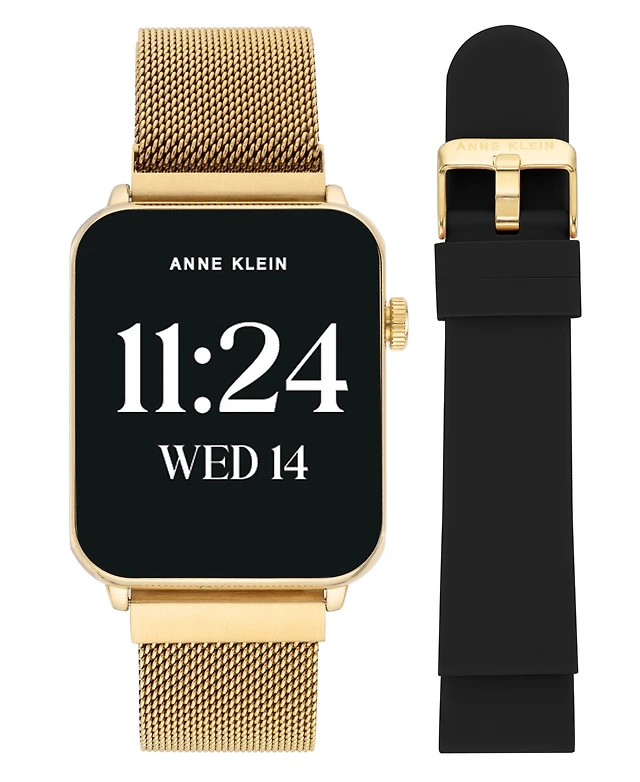 Anne Klein Women's Connect It Stellar Smartwatch with Gold-Tone Stainless Steel Mesh and Silicone Band