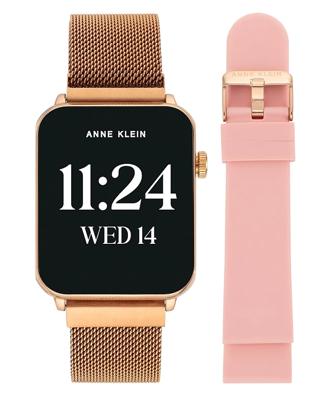 Anne Klein Women's Connect It Stellar Smartwatch with Rose Gold-Tone Stainless Steel Mesh and Pink Silicone Band, 45mm