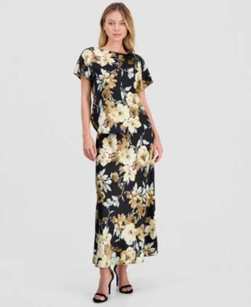 Anne Klein Womens Floral Print Bateau Neck Top Pull On Flared SkirtAnne Klein Womens Floral Print Bateau Neck Top Pull On Flared SkirtAnne Klein Womens Floral Print Bateau Neck Top Pull On Flared Skirt