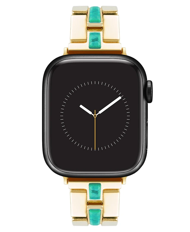 Anne Klein Women's Gold-Tone Alloy Metal Bracelet with Genuine Turquoise designed for Apple Watch 42mm (Series 1-3 only) & 44/45/46/49mm (Ultra & Ultr