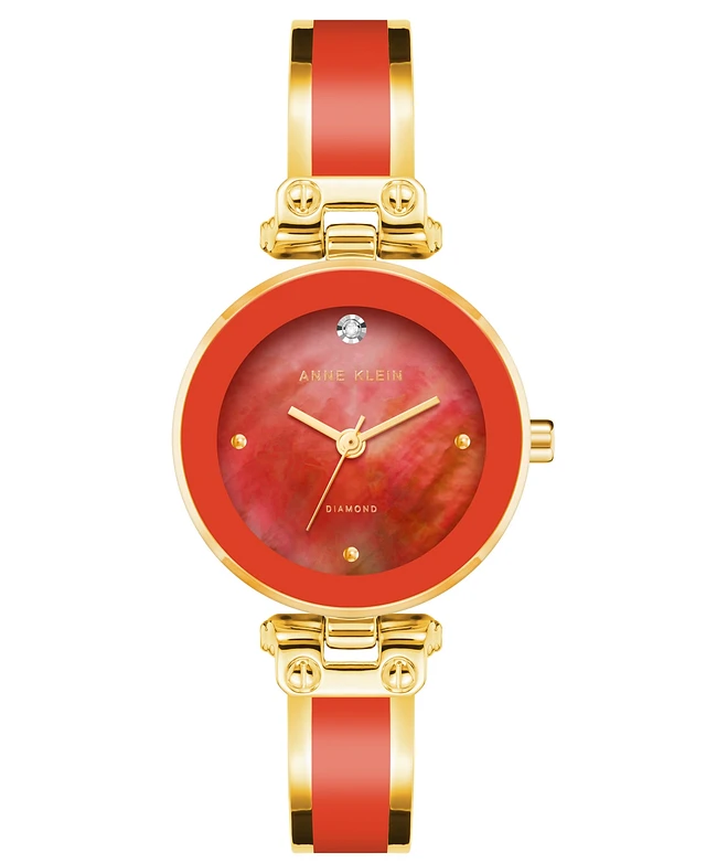 Anne Klein Women's Gold-Tone Alloy with Red Enamel Bangle Watch 34mm