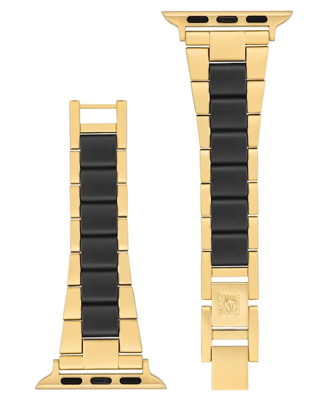 Anne Klein Women's Gold-Tone and Black Tide Plastic Bracelet designed for Apple Watch 42mm (Series 10) & 38/40/41mm