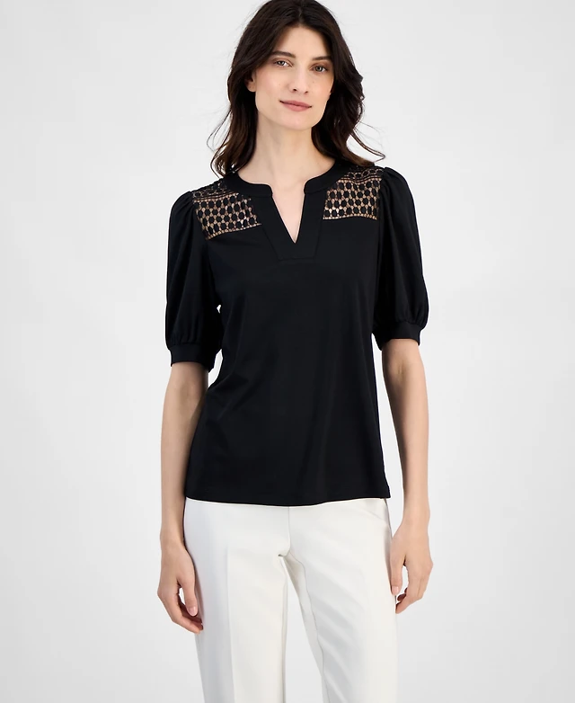 Anne Klein Women's Lace-Inset Puff-Sleeve Blouse