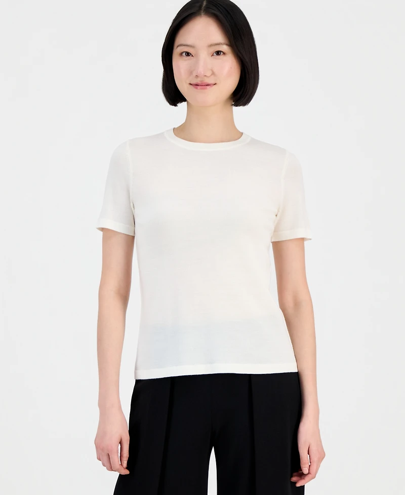 Crafted from warm wool, Anne Klein's crewneck sweater is updated with short sleeves for ease of styling.