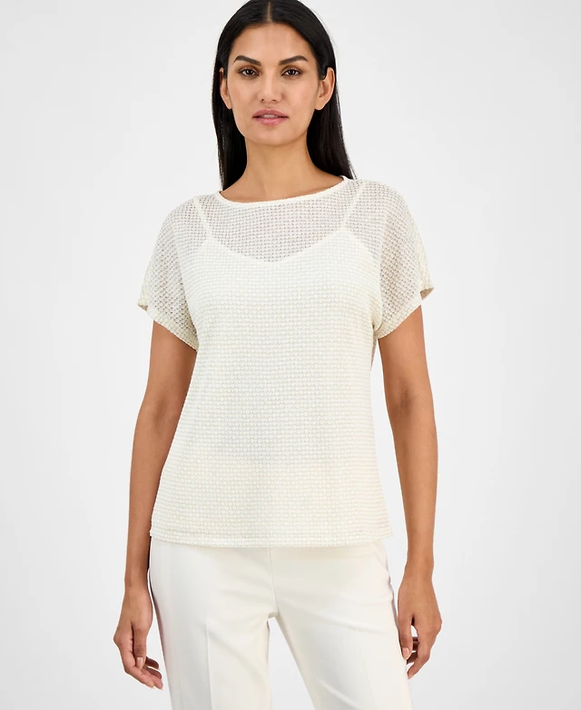 Anne Klein Women's Metallic Box Stitch Top