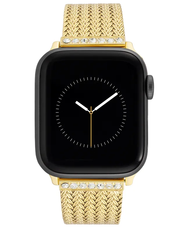 Anne Klein Women's Premium Crystal and Gold-Tone Stainless Steel Mesh Band designed for Apple Watch 42mm (Series 1-3 only) & 44/45/46/49mm (Ultra & Ul