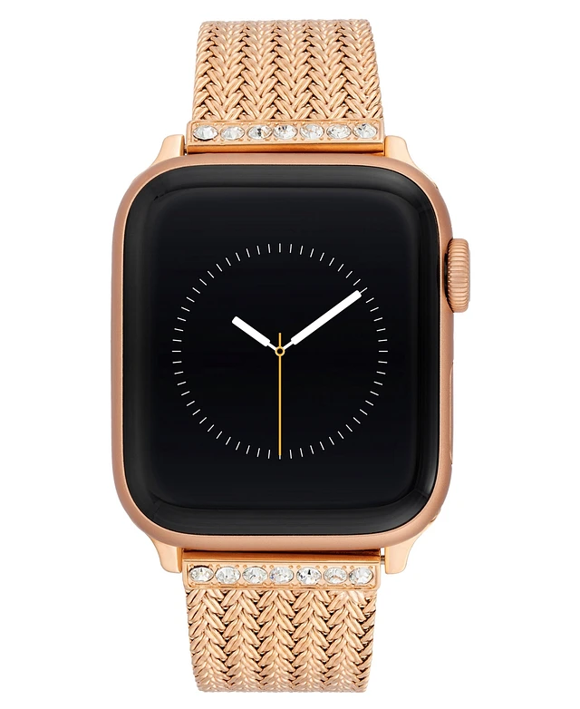 Anne Klein Women's Premium Crystal and Rose Gold-Tone Stainless Steel Mesh Band designed for Apple Watch 42mm (Series 10) & 38/40/41mm