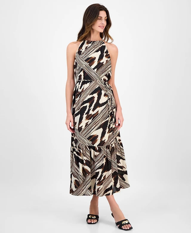 Anne Klein Women's Printed Halter-Neck Sleeveless Midi Dress