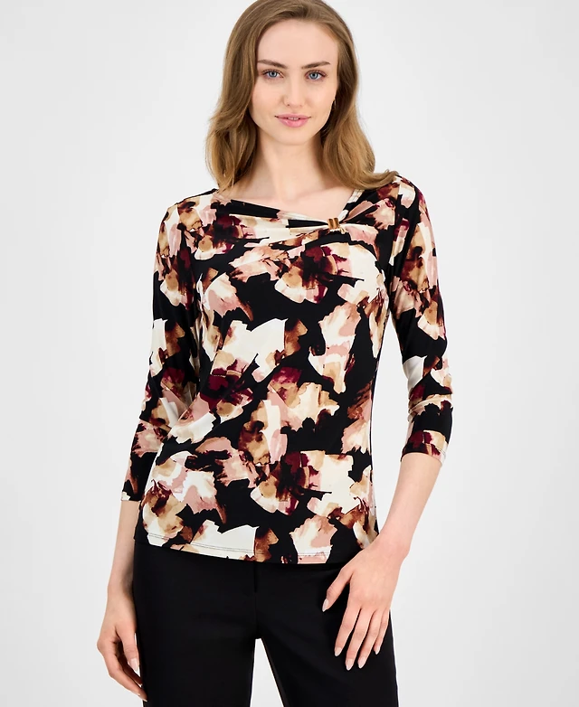 Anne Klein Women's Printed Ruched-Sleeve Top
