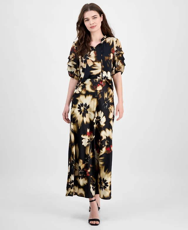 Anne Klein Women's Printed Pull-On Flare-Hem Maxi Skirt