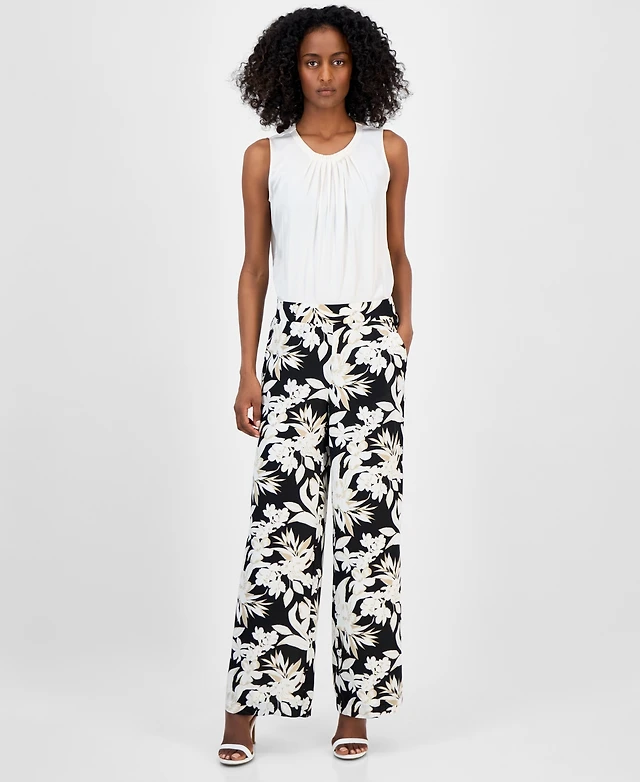 Anne Klein Women's Printed Pull-On Wide-Leg Pants