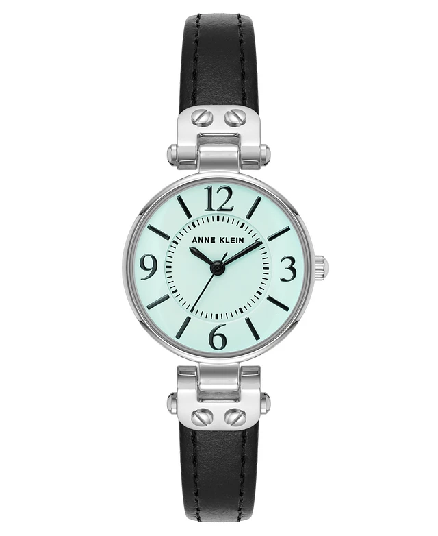 Anne Klein Women's Quartz Black Essential Leather and Silver-Tone Alloy Metal Strap Watch, 26mm