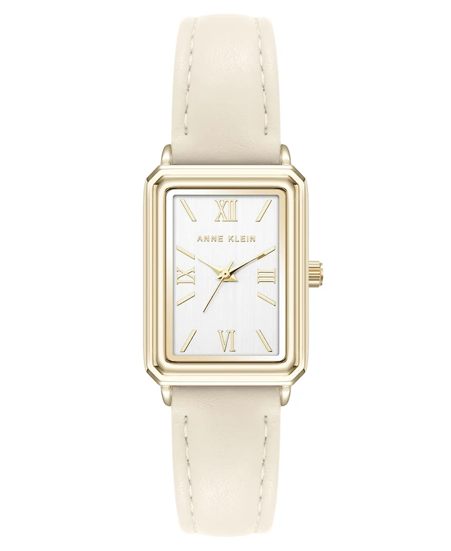 Anne Klein Women's Quartz Casual Cream Polyurethane Leather and Gold-Tone Metal Alloy Watch, 25mm