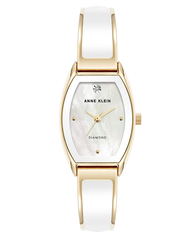 Anne Klein Women's Quartz Cushion White Enamel with Gold-Tone Metal Alloy Bangle Watch, 22mm