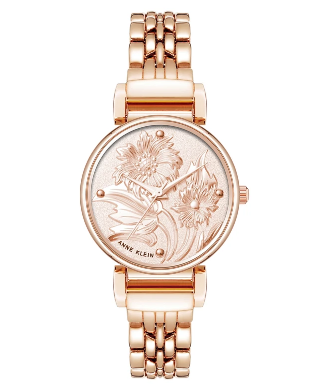 Anne Klein Women's Quartz Floral Rose Gold-Tone Metal Alloy Watch, 30mm