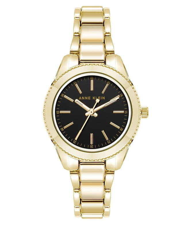 Anne Klein Women's Quartz Round Roman Numeral Gold-Tone Metal Alloy and Black Dial Watch, 32mm