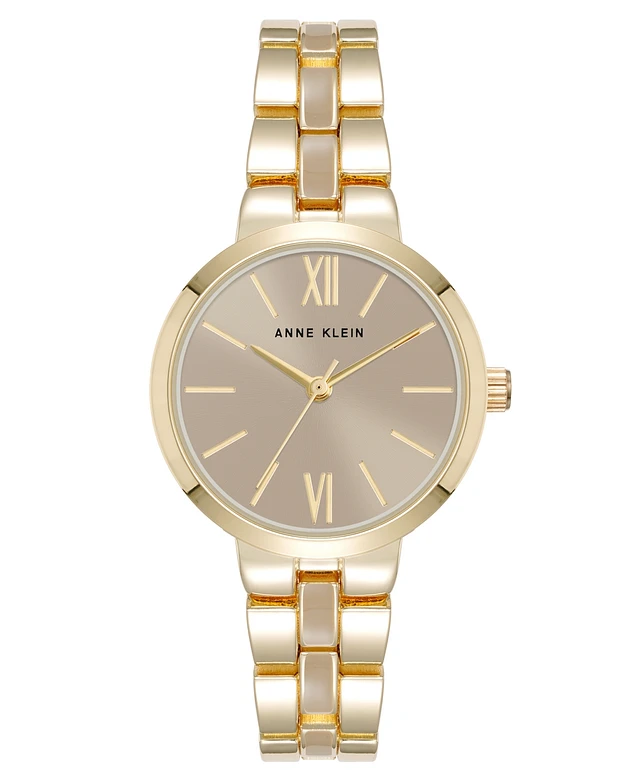 Anne Klein Women's Quartz Modern Taupe Enamel and Gold-Tone Alloy Metal Watch, 30mm