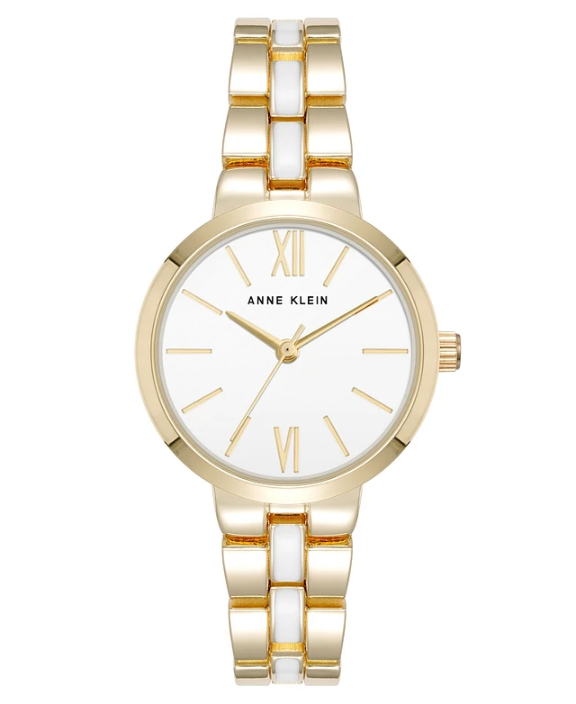 Anne Klein Women's Quartz Modern White Enamel and Gold-Tone Alloy Metal Watch, 30mm