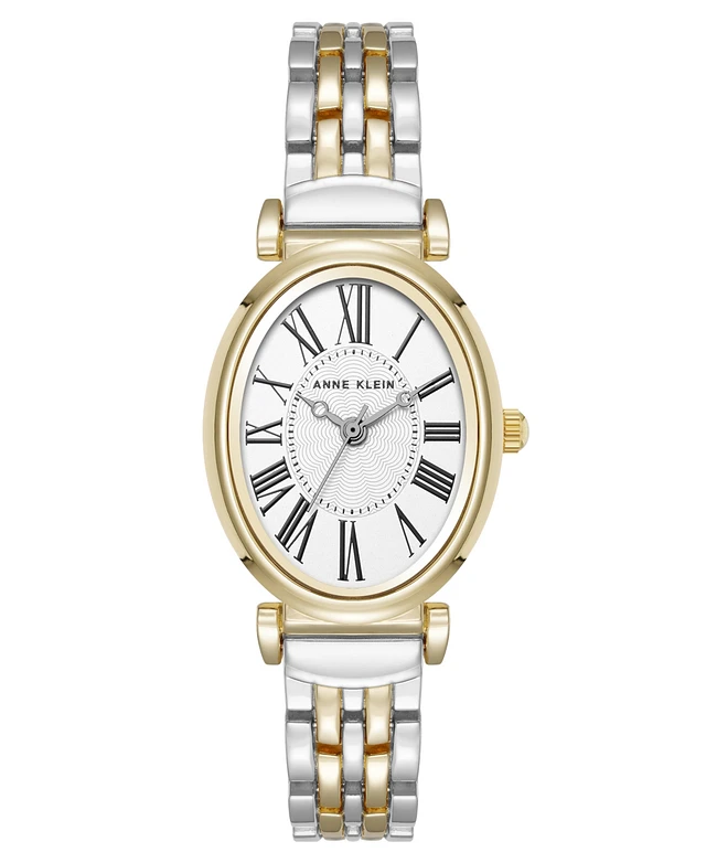 Anne Klein Women's Quartz Oval Roman Numeral Two-Tone Metal Alloy Watch, 25mm