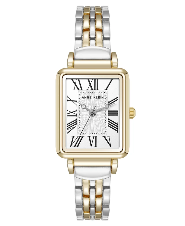 Anne Klein Women's Quartz Rectangular Roman Numeral Two-Tone Metal Alloy Watch, 23mm