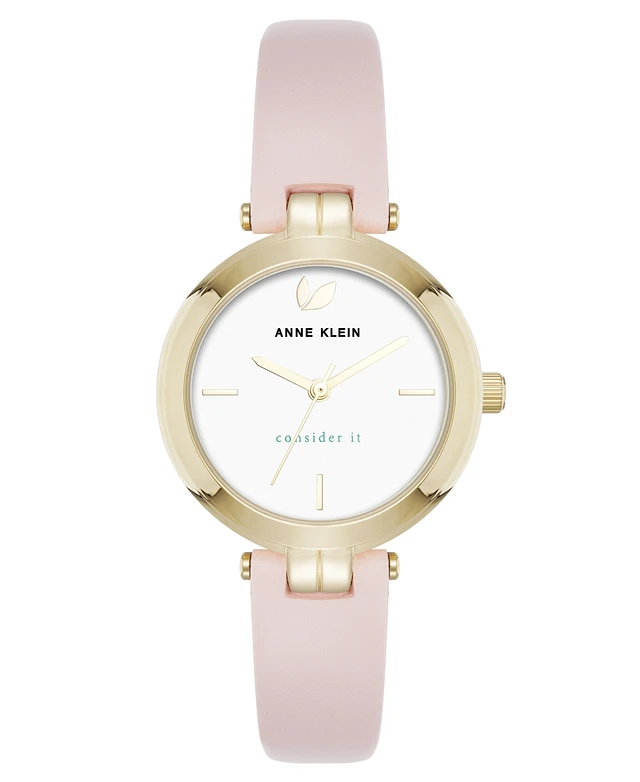 Anne Klein Women's Quartz Round Blush Pink Leather and Gold-Tone Metal Alloy Strap Watch, 32mm
