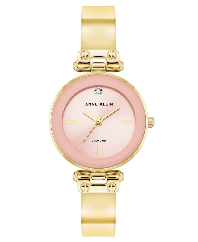 Anne Klein Women's Quartz Round Pink and Gold-Tone Metal Alloy Bangle Watch, 28mm