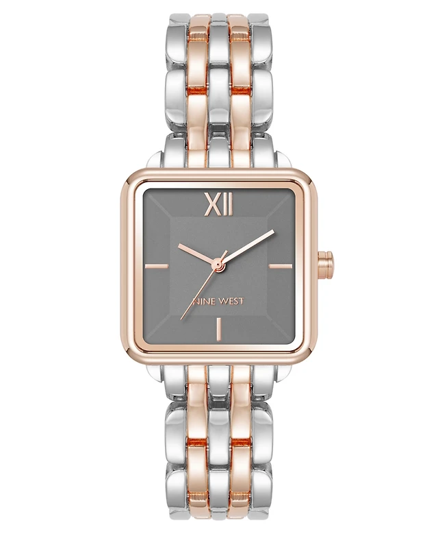 Anne Klein Women's Quartz Square Gray and Two-Tone Metal Alloy Watch, 29mm