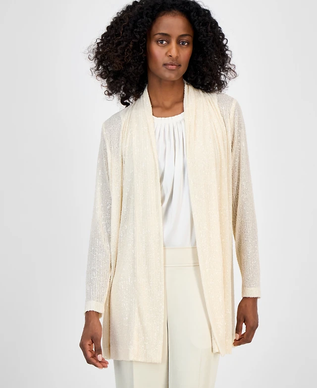 Anne Klein Women's Sequin Open-Front Long-Sleeve Cardigan