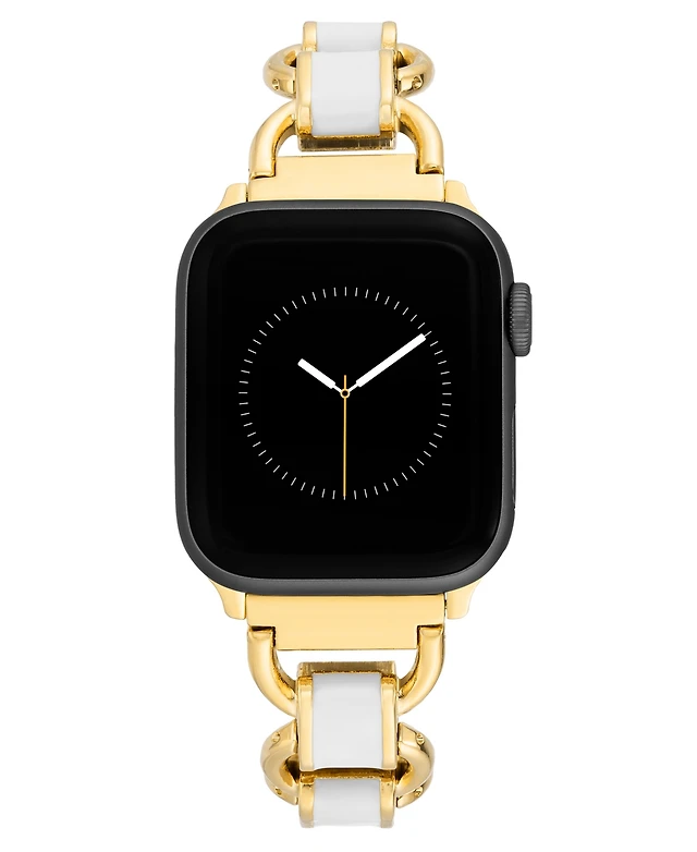 Anne Klein Women's White Enamel and Gold-Tone Alloy Metal Link Bracelet designed for Apple Watch 42mm (Series 1-3 only) & 44/45/46/49mm (Ultra & Ultra