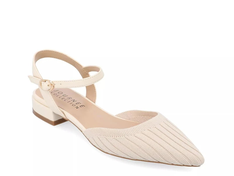 Elegance and comfort merge to shape the Ansley pump from Journee Collection. Designed with a softly knitted upper, padded footbed, adjustable ankle strap and a low block heel, this pointy toe sandal complements casual and formal attires in equal parts.