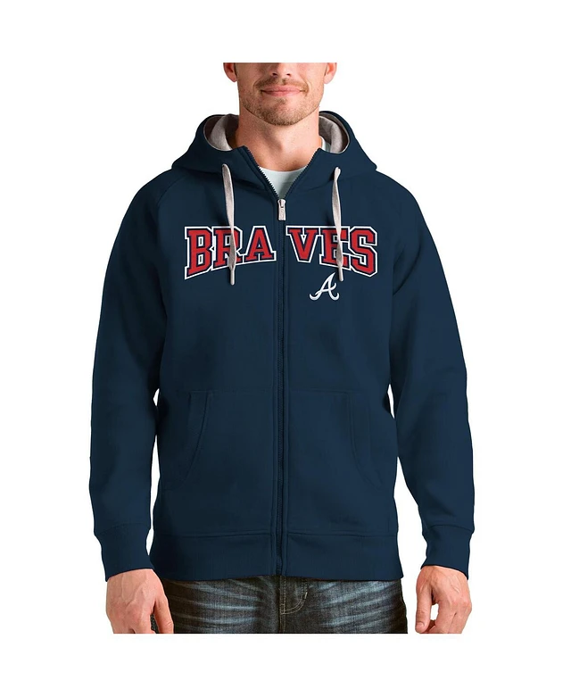 Antigua Men's Navy Atlanta Braves Team Logo Victory Full-Zip Hoodie