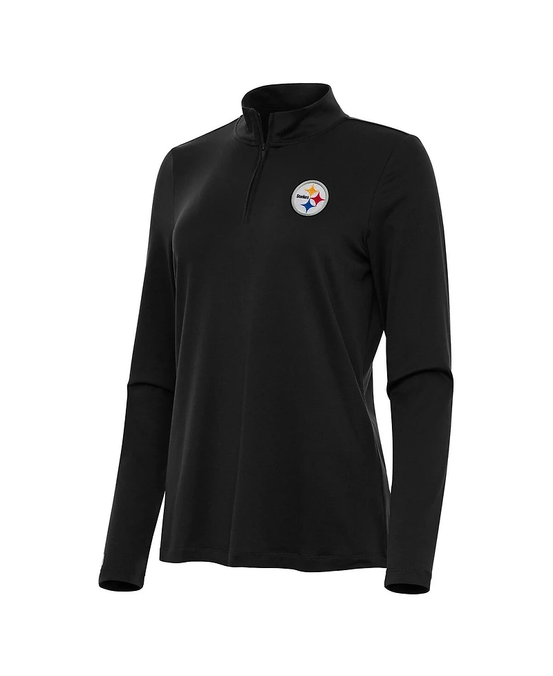 Antigua Women's Black Pittsburgh Steelers Reprocess Quarter-Zip Top