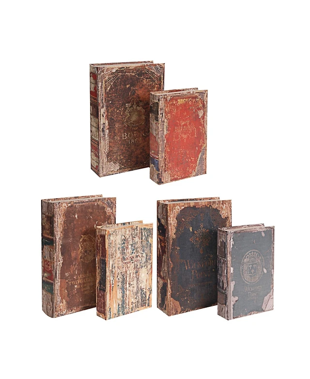 Antique Multi-Colored Book Boxes, Set of 6