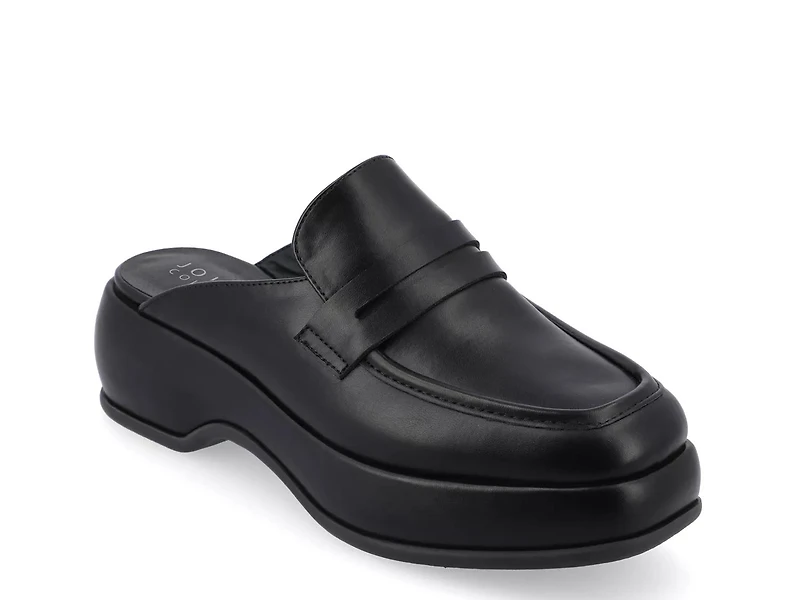 From office to dinner dates, the Antonina mule will be a perfect choice. Made from vegan synthetic, this slip-on boasts a loafer design with Journee Comfort System™ footbed for utmost comfort and a chunky platform heel for added appeal.